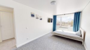 During the final finishing stage, curtain rods were installed and the apartments were fully furnished with new furniture. All apartments and common areas have been cleanly finished, furnished, and are ready for immediate use.