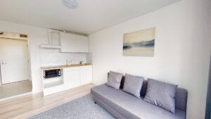New sanitary fixtures, including toilets and washbasins, were installed in the apartments, and the kitchens were fully fitted out with kitchen furniture and appliances. In addition, apartment-based ventilation systems were built and commissioned.
